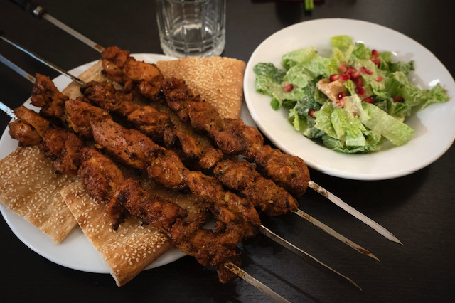 BackCHICKEN KEBAB COMBO / 鸡肉串套餐$ 28.95/ ComboChicken KebabsWell doneTake outVery spicySpicyAdd To Shopping Cart Add to WishlistCategoriesKEBABSDetails4 skewers of non-spicy chicken kebabs, four piece of tanoor naan & Caesar salad四串不辣鸡肉串四块烤馕和沙拉SKUKEBABS2